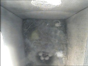 8.55am 4 Chicks have now hatched. The last 2 hatched overnight. The female has just removedthe just removed the broken shell from the nest.